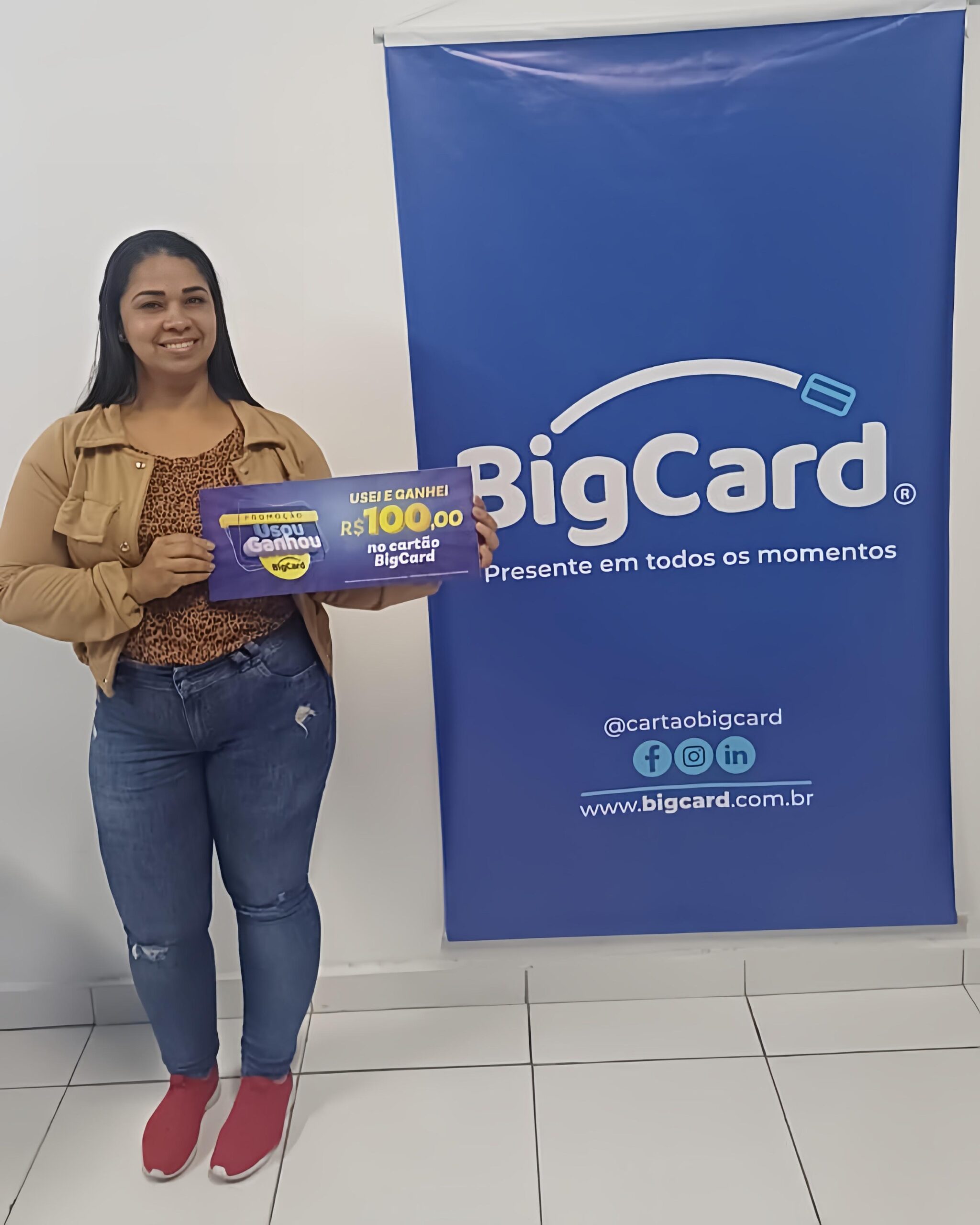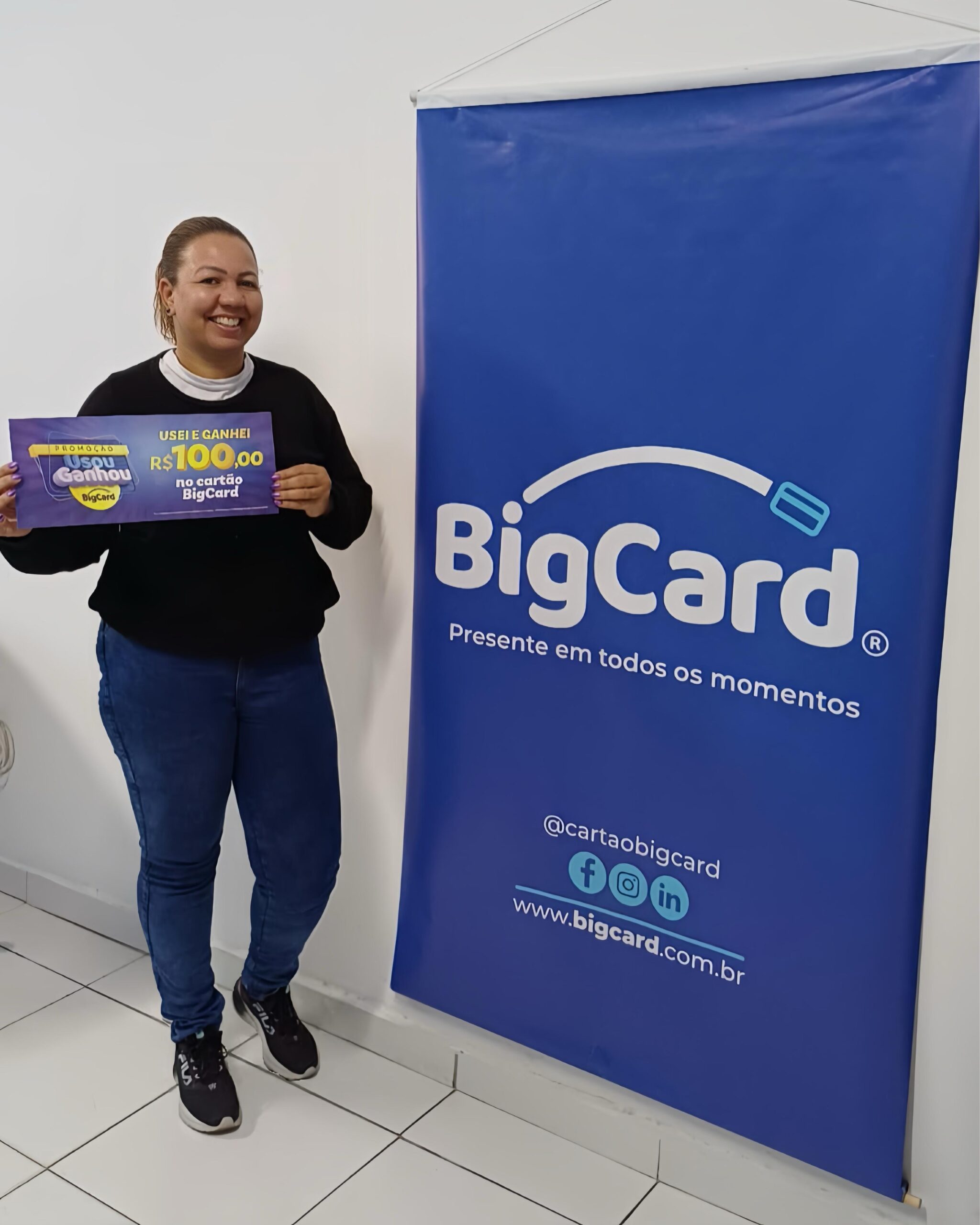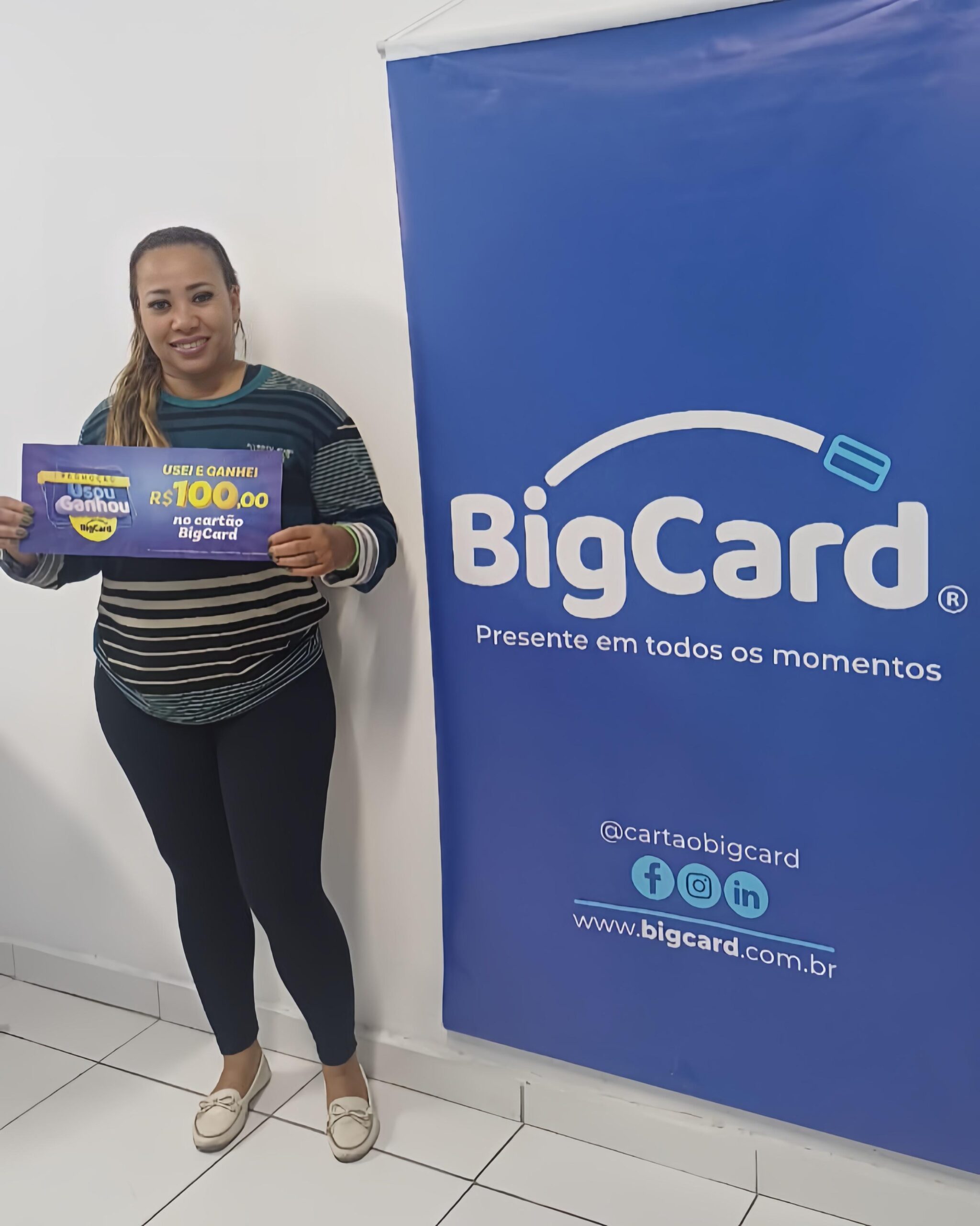 Todo mês, são realizados 100 sorteios de R$100 em crédito no cartão. O valor pode ser usado para abater na fatura, ou para compras na Loja Online BigCard.