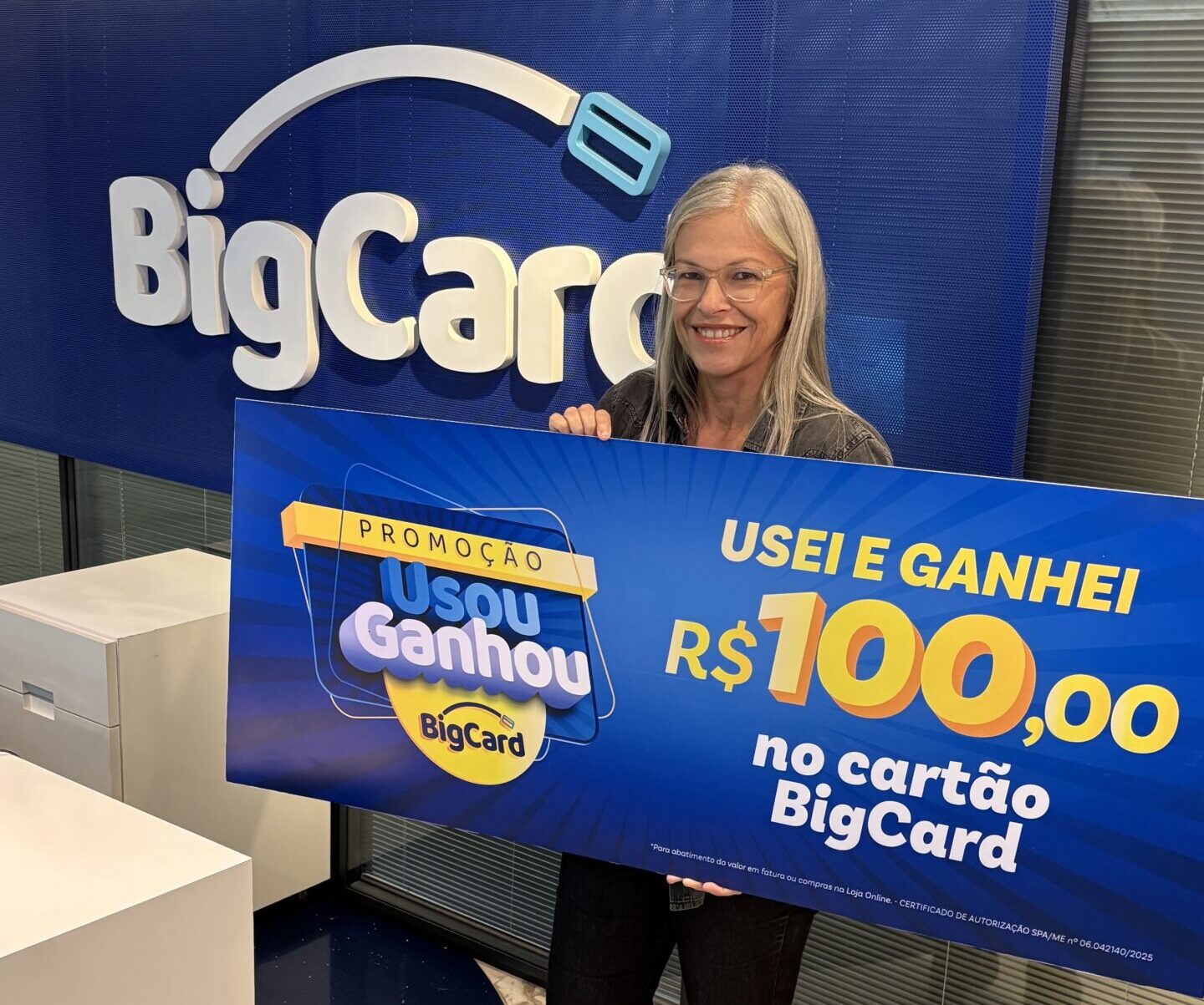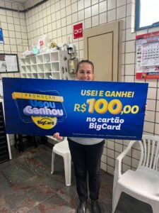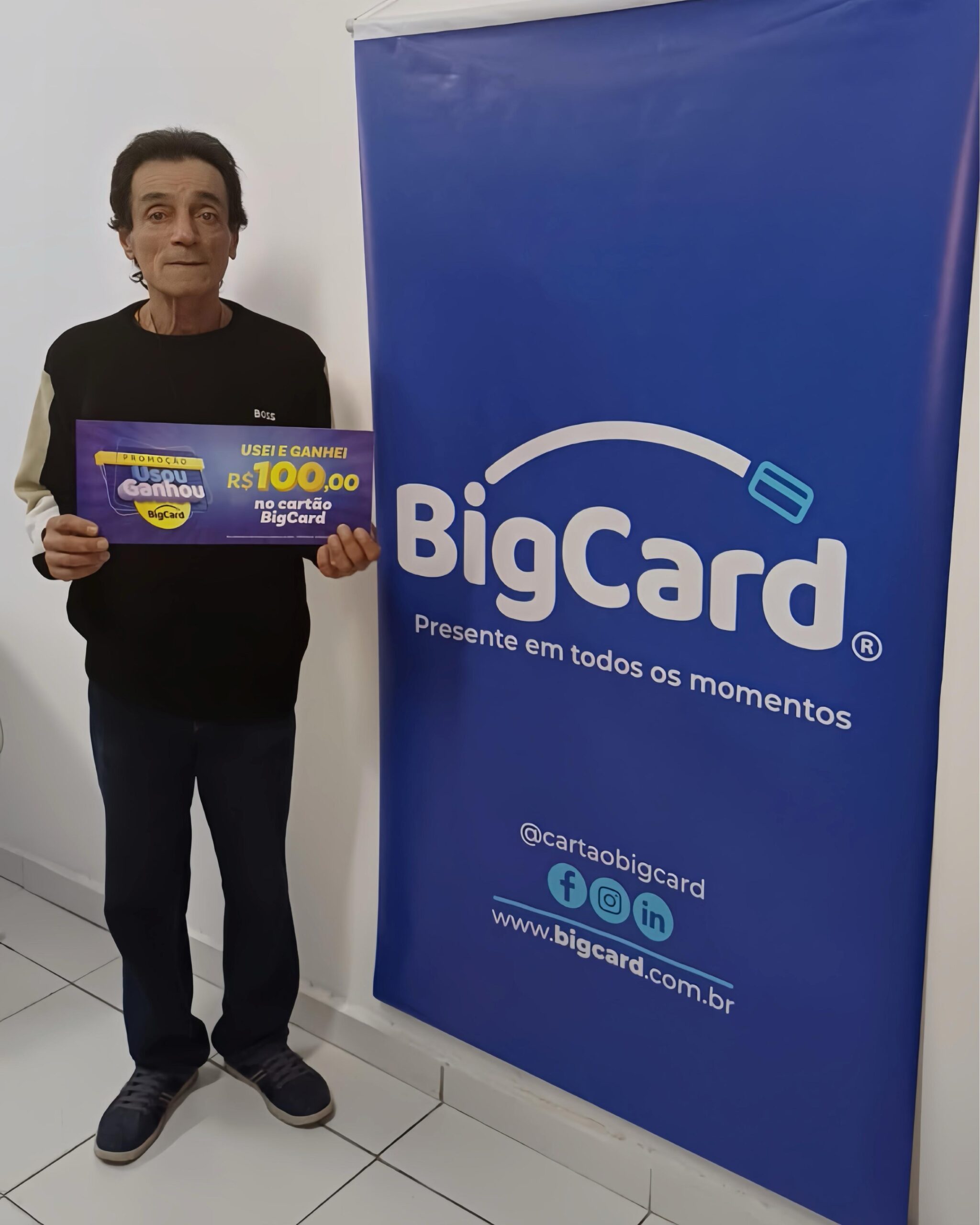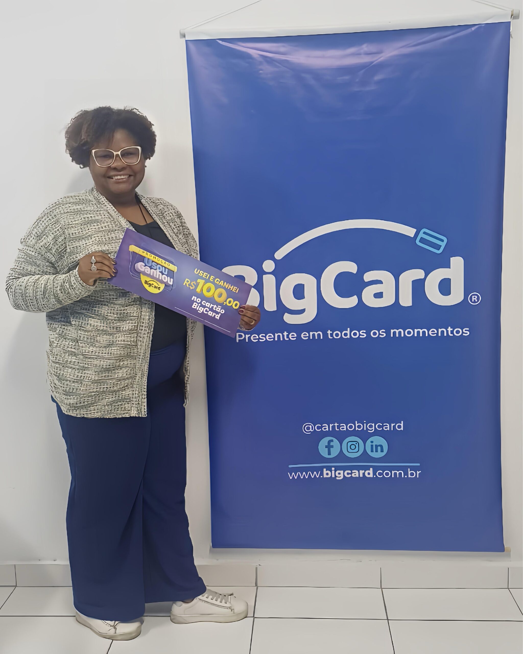 Todo mês, são realizados 100 sorteios de R$100 em crédito no cartão. O valor pode ser usado para abater na fatura, ou para compras na Loja Online BigCard.